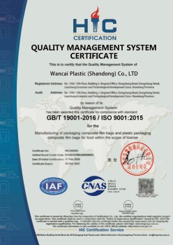 Этот международный стандарт для систем управления качеством признан во всем мире. Это гарантирует нашим клиентам, что Wancai Plastic следует за лучшими практиками в производстве продуктов и управлении.